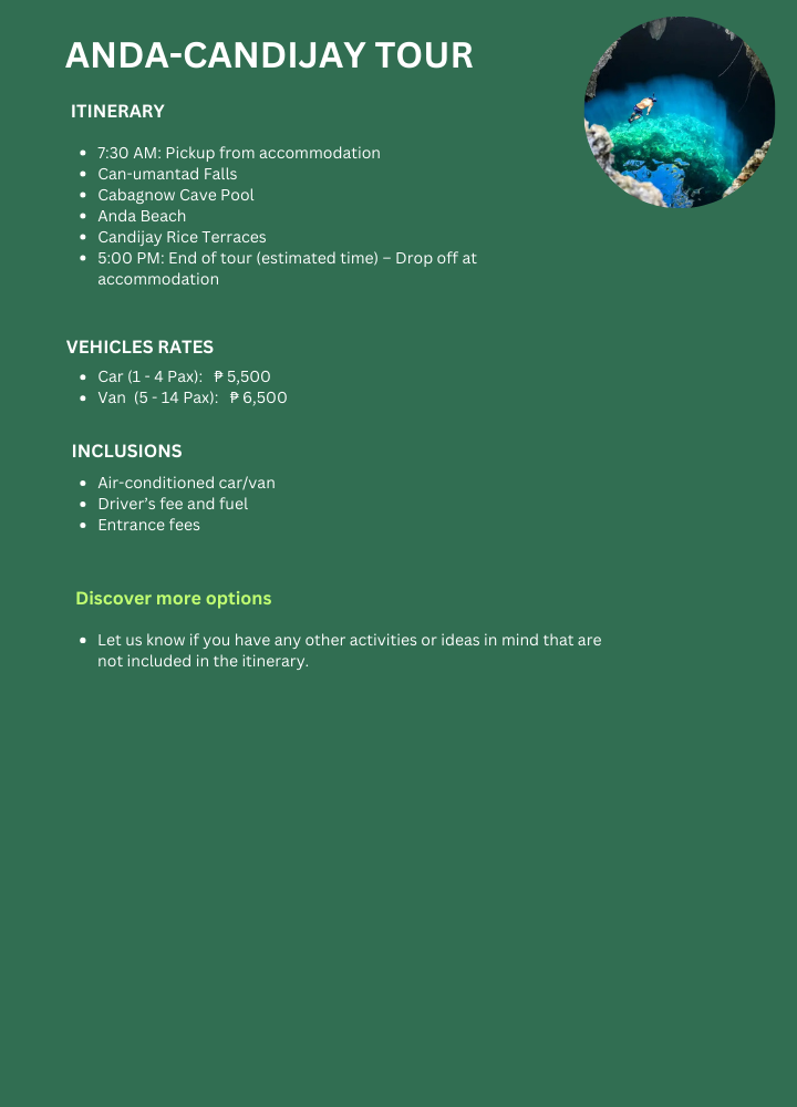 Highlights of the Anda-Candijay Tour: